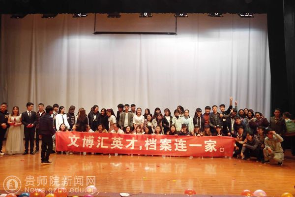 本网讯 为了庆祝文博档案学会五周年,增进档案学三届同学的感情、促进文博档案学会更好的发展。11月17日,文博档案学会于逸夫楼演播厅举行 “文博汇英才,档案连一家”联谊晚会。出席此次活动的嘉宾老师有:贵州黔诚聚兴人力资源有限公司负责人李俊、副院长李忠峪、档案学教师瞿智琳、向礼花,参加此次活动的同学有2015、2016和2017三个年级的档案学班同学和60个社团代表及文博档案学会全体成员。为办好此次晚会,演员同学认真地排练节目,其他同学积极地投入到后勤保障工作,确保晚会顺利进行。