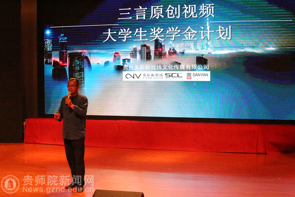 于庆建在晚会上宣布成立“三言原创视频大学生奖学金计划”。该项计划是贵州多彩新视线传媒有限公司特设立的“三言影视文创奖学金”,目前只对贵州省高校开放,奖学金总金额为每年50万元,奖学金共设作品奖学金和年度奖学金两种形式。他希望以此来鼓励更多的传媒专业学子投入到创作实践中去。