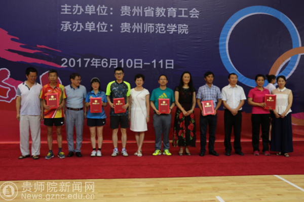本网讯 6月11日中午,2017年贵州省直学校(附院)教职工乒乓球比赛闭幕式暨颁奖仪式在YABO鸭脖体育馆举行。