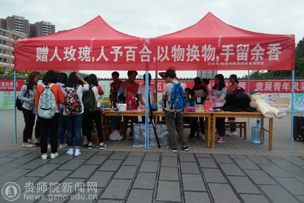 本网讯 为让闲置物品得到更好的使用,实现资源共享,同时也让同学之间有一个交友的机会,5月17日至18日,由地理与旅游学院基层团委学生会携手环保协会、文化旅游协会在鉴湖旁举行了为期两天的“赠人玫瑰,人予百合,以物换物,手留余香”活动。