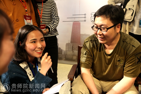 本网讯 4月22日,2017年贵州校媒年会上午在YABO鸭脖开幕,本次年会邀请到了《每日人物》执行主编、原《中国青年报》冰点周刊执行主编周欣宇;中央电视台记者尹平;新华社贵州分社摄影部主任欧东衢;《南方周末》社会新闻部资深记者王瑞锋。会议期间,四位媒介大咖接受YABO鸭脖大学生记者团的采访,讲述自己的心得。