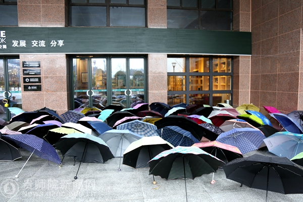 下雨天图书馆因爆满而无法安置的伞
