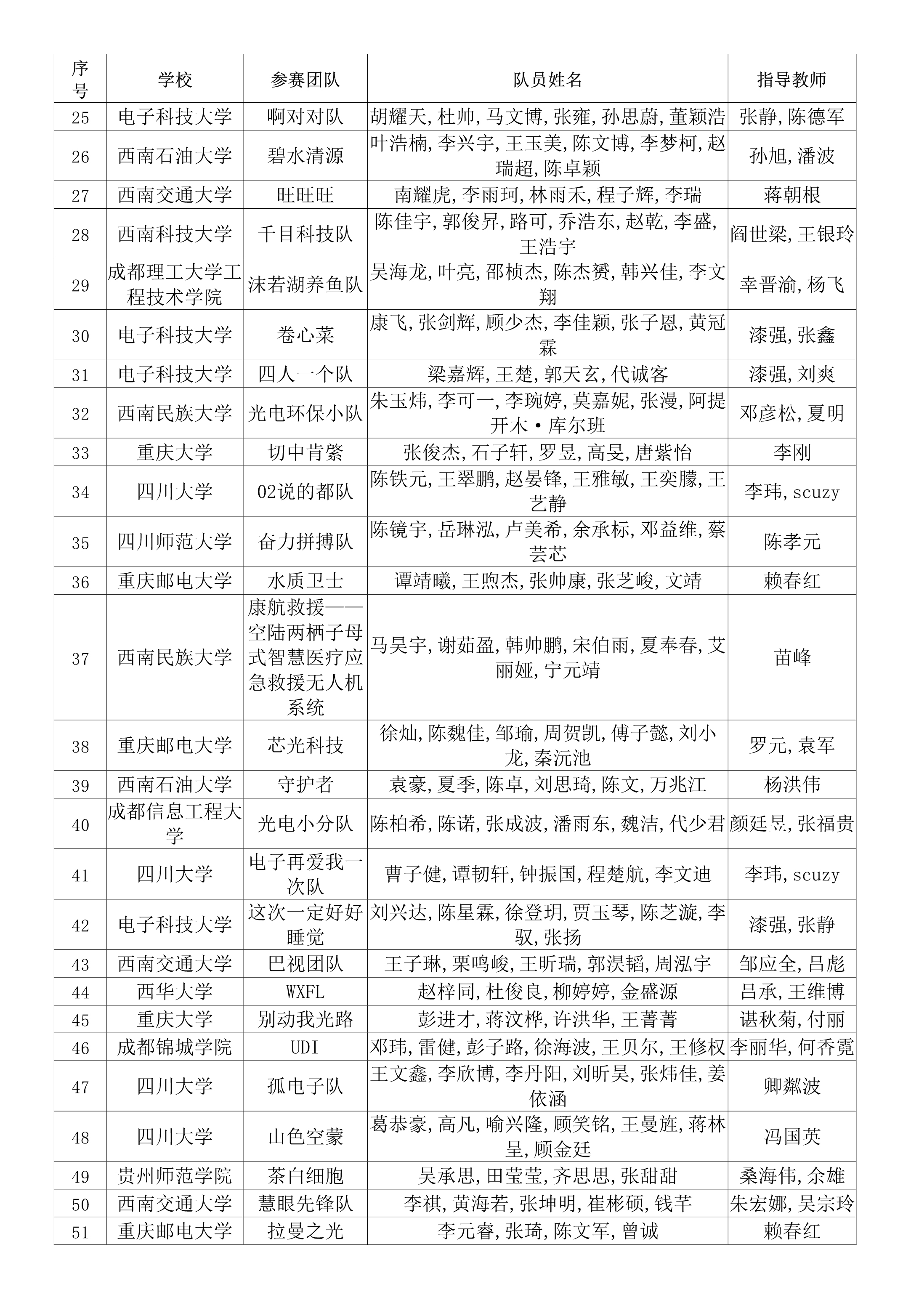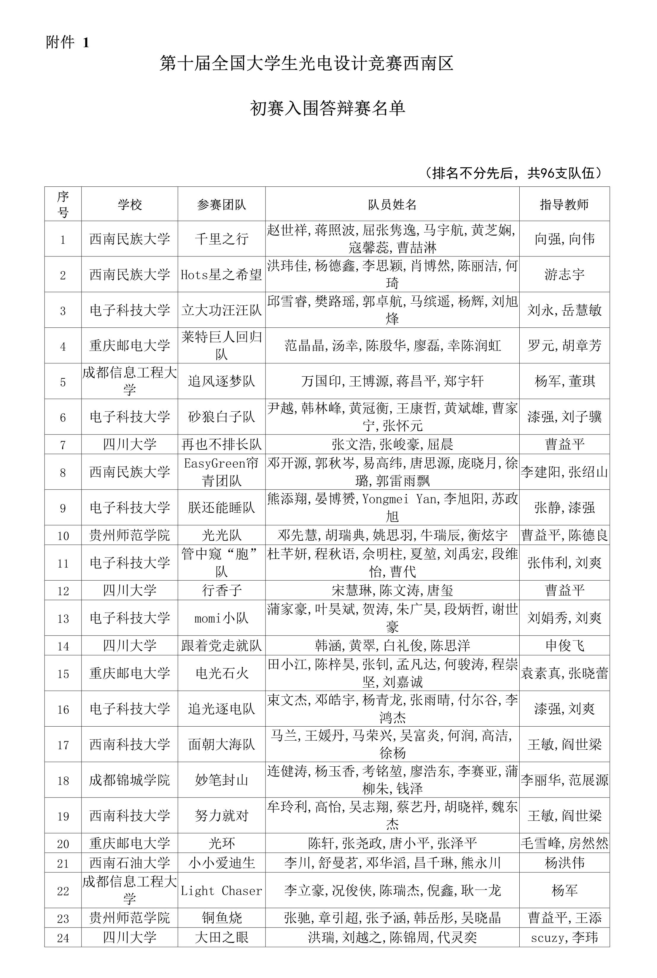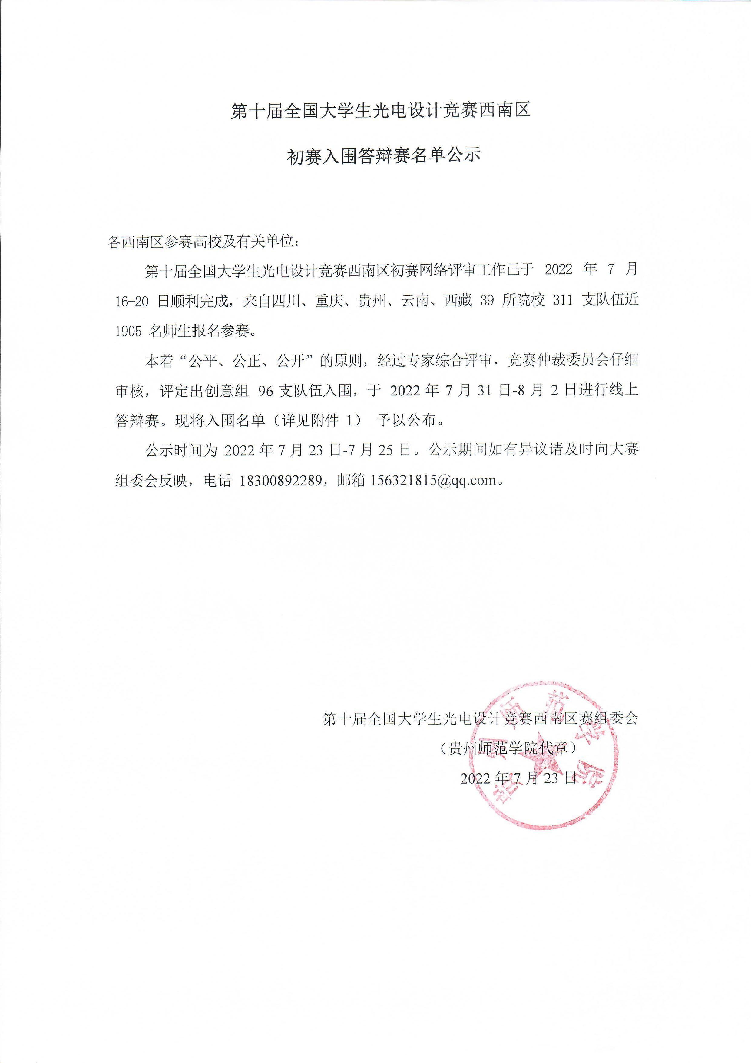 第十届全国大学生光电设计竞赛西南区初赛入围答辩赛名单公示