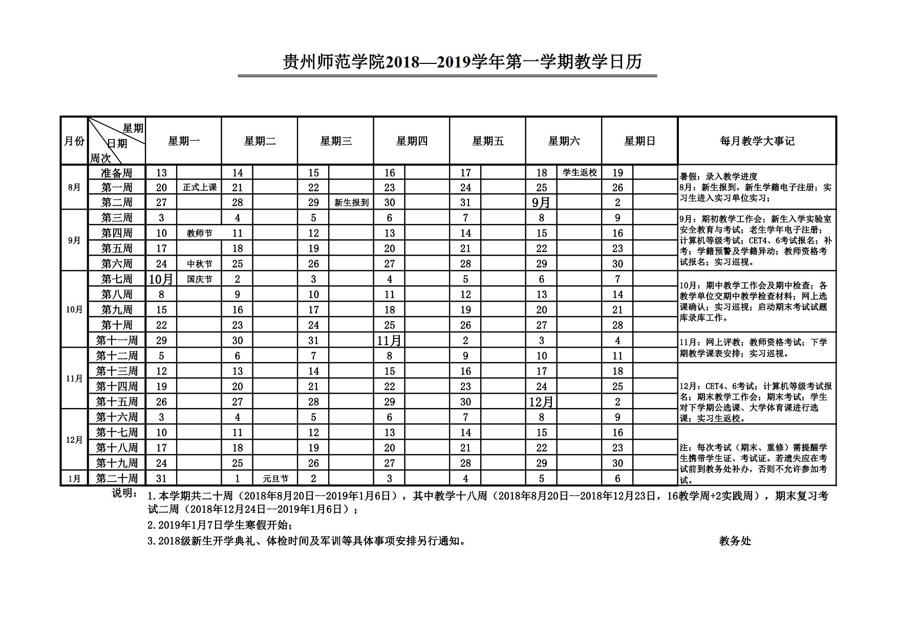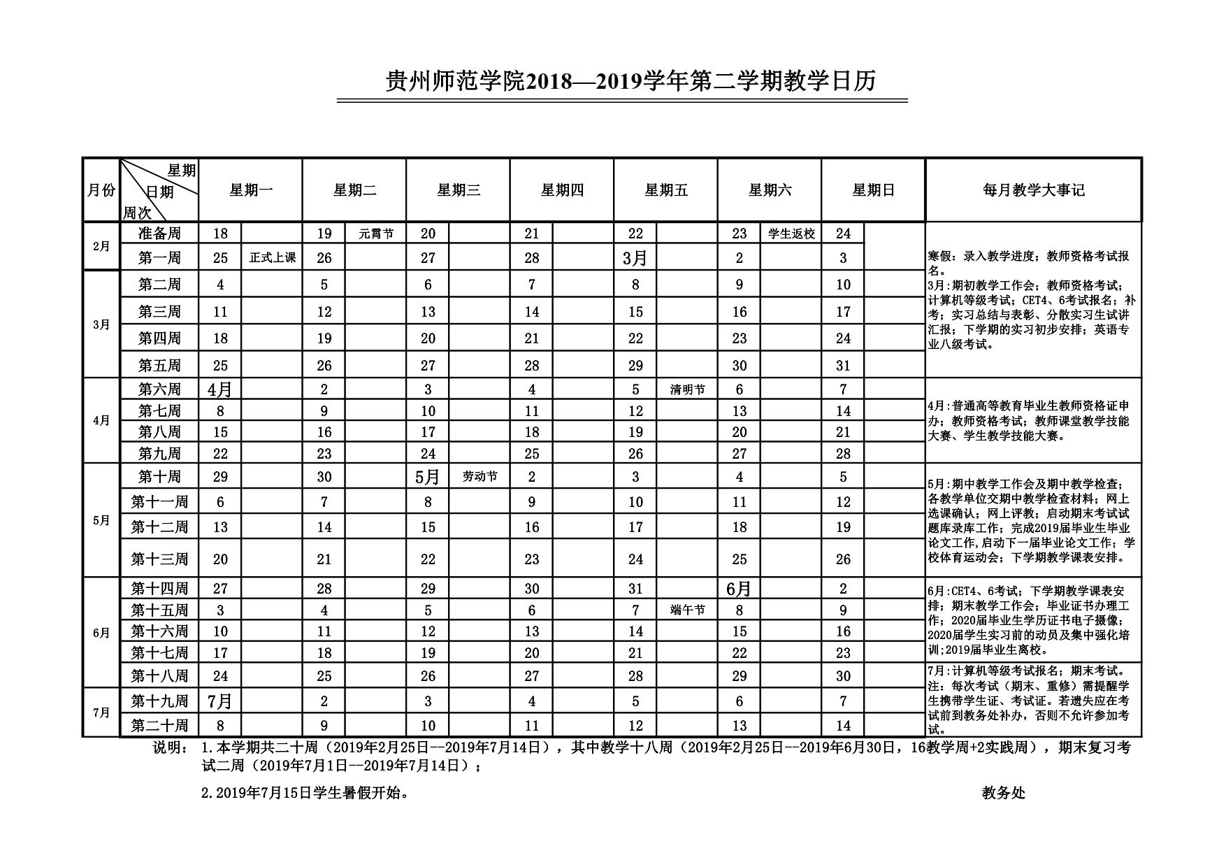 YABO鸭脖官网2018—2019学年教学日历