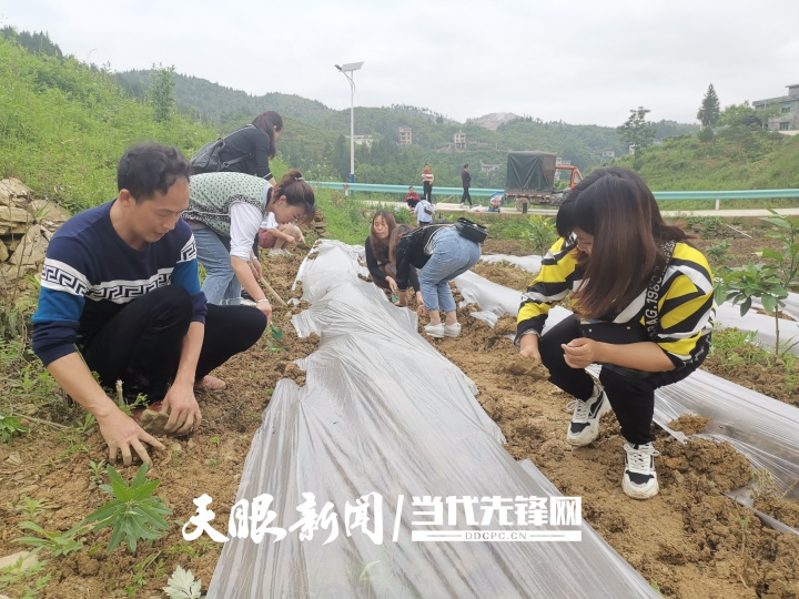 高强与村民一起下地干农活