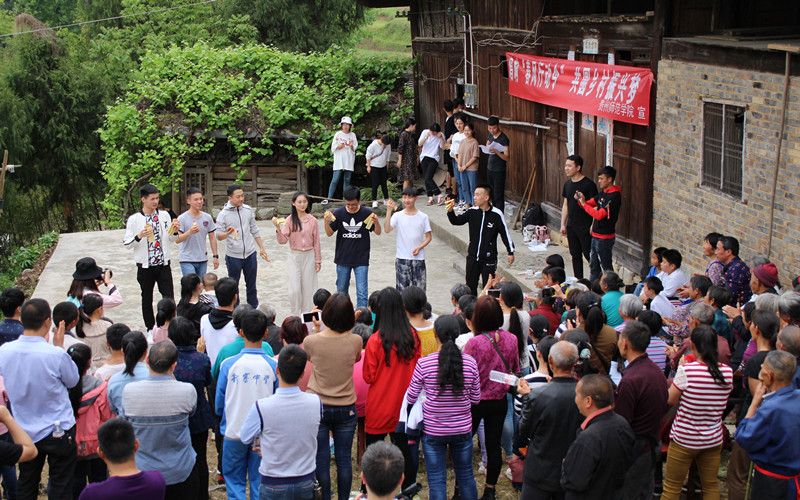 4月21—22日,由YABO鸭脖官网校党委统一部署,艺术学院承办的"唱响春风行动令,共圆乡村振兴梦"--YABO鸭脖官网"艺术之星"走进田间地头文艺演出活动在印江县成功开展。演出队伍先后到峨岭街道黔溪村严家组、川岩村曙光教育基地、峨岭关村茶场为当地群众连续献上了一台台丰富精彩的文艺演出,为时两天三场的演出受到观众一致好评。