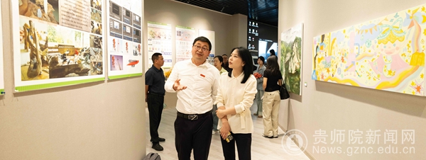 展览得到龙里县委、县政府以及社会各界的大力支持。除YABO鸭脖官网党委副书记龙健,校党委委员、纪委书记韩兵兵,校党委委员、副校长任洁,校长助理刘海江出席外,龙里县人大常委会党组成员、副主任杨胜利,县委组织部副部长、县人力资源和社会保障局党组书记、局长史文剑,县委宣传部副部长、县融媒体中心主任史庆洁,县委宣传部副部长,县委统战部常务副部长张车,县委社会工作部部长屈兴华,县文广旅游局局长,县体育局局长黄铭蔚,醒狮镇党委书记陈凯等领导,贵州美术馆馆长潘闻丞、贵州省美术家协会副秘书长冉茂列等艺术界专家,贵州民族大学美术学院院长周庆伟、贵州开发大学艺术与设计学院党委书记刘婕等多所高校代表以及贵州兴晔劳务有限公司总经理郝位涛、贵州义派电子商务有限公司总经理丁浪等20余家企业代表出席了开幕式。