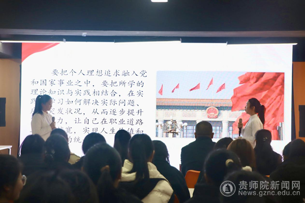 本网讯 为贯彻落实党的二十届三中全会精神和习近平总书记关于就业工作的重要指示精神,引导我院学生树立正确的就业观、择业观和成才观,提升自身素质,学好专业知识,培养求职技巧,增强适岗能力。12月5日,根据学校团委的安排部署,经过马克思主义学院团组织的精心策划,我院2023级思想政治教育专业一班团支部在宁静楼贵州省青年创新创业研究中心开展“就业领航 职引未来”主题团日活动。校党委委员、副校长、马克思主义学院党委书记任洁出席活动,校团委书记周煜、马克思主义学院党委副书记杨成友及学院副处级组织员周昌霖参加本次活动。