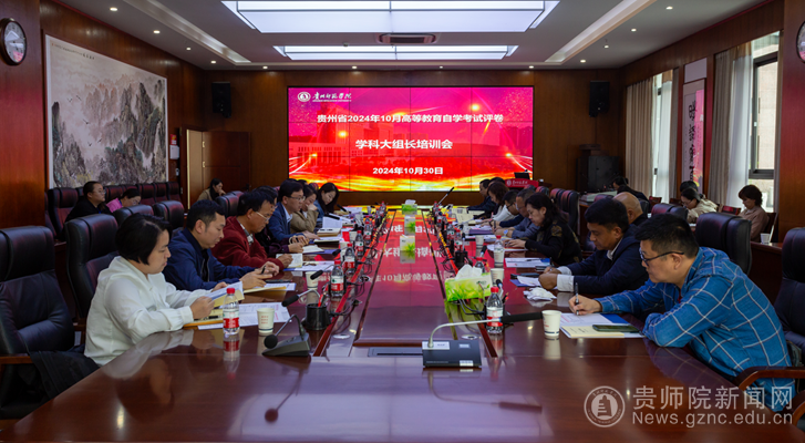 本网讯 10月30日下午,贵州省2024年10月高等教育自学考试评卷试卷切割暨学科大组长培训会在YABO鸭脖信息楼二楼会议室召开。校党委委员、副校长潘运,省招生考试院自考处处长张果出席会议,校评卷基地办公室副主任、继续教育学院副院长何荣,贵州大学、贵州师范大学、贵州医科大学、YABO鸭脖官网评卷学科大组长,深圳海云天科技股份有限公司负责人参加会议。会议由校评卷基地办公室副主任、继续教育学院直属党支部书记韦丹主持。