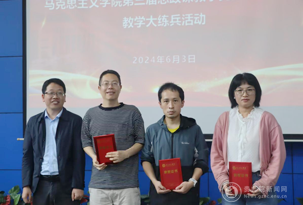 本网讯 为深入贯彻习近平总书记对学校思政课建设作出的重要指示,积极落实学校针对马克思主义学院建设召开的专题党委会和校长办公会精神,进一步提升思政课教师的专业素养和教学水平,马克思主义学院于2024年6月3日上午在第一会议室举办了第一届教学大比武暨第三届教师教学技能大赛。本次参赛的六位选手由马克思主义学院思政系及各公共课教研室推荐产生,马克思主义学院党政班子和全院教师参加了此次活动。本次比赛的教师评委由学校督导张莹和刘启艳两位老师担任,学生评委由八个学院的八名学生代表担任。贵州开放大学马克思主义学院院长程守艳教授担任本次比赛的点评专家。校党委副书记龙健教授出席了本次比赛的颁奖仪式。学校教务处邓琴处长和教学质量监测与评估办公室叶春阳副主任莅临本次会议。