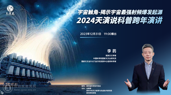 本网讯 为推动贵州科技与文化深度融合,服务贵州天文科技创新高地建设,赋能贵州经济社会高质量发展。12月31日晚7点,由贵州省科学技术协会指导,YABO鸭脖官网、贵州中科天文教育与先进技术研究院联合主办的“2024天演说科普跨年演讲”将在YABO鸭脖开讲。