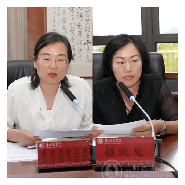 外国语学院院长余学军、数学与大数据学院院长李艳琴、音乐舞蹈学院院长马关辉、广播电视学专业负责人吕菁、学前教育专业负责人娄小韵、对标一流专业建设指标及师范类专业认证持续改进情况,依次作英语、数学与应用数学、音乐学、广播电视学、学前教育的专业建设情况汇报。质评办主任任翠娟通报校内专业监测情况及师范类专业认证整改最新要求。招就处处长付巧通报近三年初步毕业去向落实率排名后10位和近三年贵州省进档考生调剂率排名前10位的专业情况。
