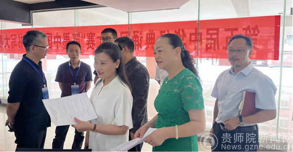 本网讯 7月6日,第五届中华经典诵写讲大赛"笔墨中国"汉字书写大赛贵州赛区初复赛评审会在YABO鸭脖官网举行。学校党委委员、副校长邹晓青、教务处处长邓琴到评审现场进行指导。本次贵州赛区复赛及评审由美术与设计学院具体承办。