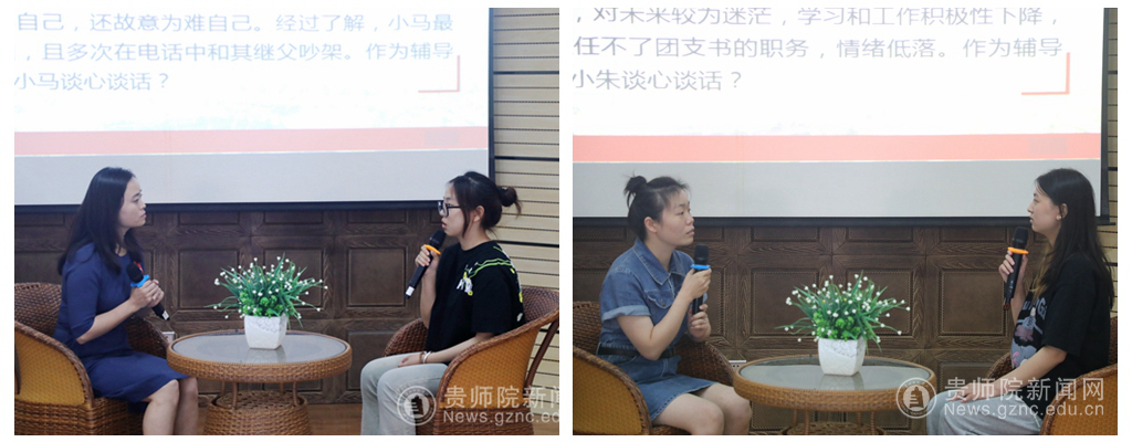 评委老师们对参赛选手进行了精彩的指导。刘治军、金敏、田歆分别就选手案例研讨和谈心谈话的表现作出了点评,并把两个环节的解题思路、作答要点进行了讲解。