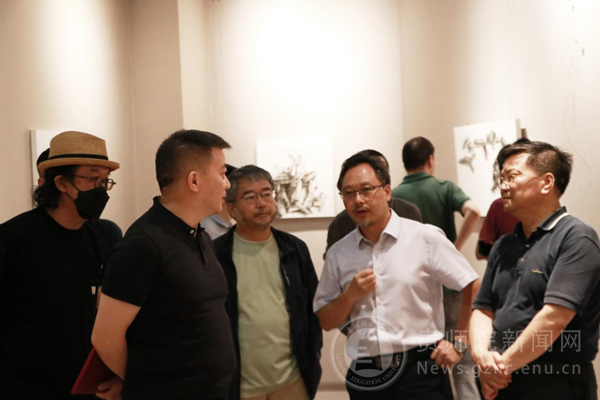 会议伊始,校党委书记石培新教授来到明义楼与参加会议的专家进行了交流,代表学校对所邀请的知名艺术家表示了诚挚的谢意,并期望美设学院的教师得到专家们的长期的指导和帮助。