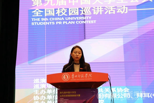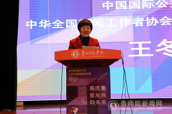 在巡讲会开幕式环节,校党委委员、副校长邹晓青首先对参会嘉宾表示欢迎,接着全面介绍了学校的发展历史、办学特色、公共关系学专业的学科建设等情况,并表达了对本次大赛的美好祝愿。中国国际公共关系协会副会长、中华全国新闻工作者协会书记处原党组成员、书记处书记王冬梅在随后的致辞中指出,此次大赛推动大学生接触更加广阔的公共关系领域,开拓社会视野、增长专业才干,为促进中国公共关系行业的专业化、规范化和国际化作出更大贡献。贵州省国际国内公关协会秘书长彭贵军在发言中鼓励同学们不仅要珍惜这样难得的参赛机会,同时还要讲好贵州的故事,发出贵州的好声音,挖掘贵州的好产品,树立贵州的好形象。