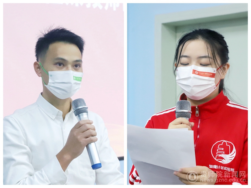 任课教师代表韦南京、学生代表兰慧颖(2019级“雏鹰计划”创新实验班)、新生代表成俊杰分别做了发言。