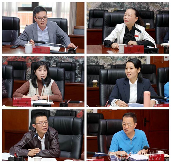 会上,熊世桓、邹晓青分别就申报教师资格面试点、建立“强师工程”样板工程等工作作汇报,学校相关部门和学院负责人围绕调研主题分别进行了交流发言。