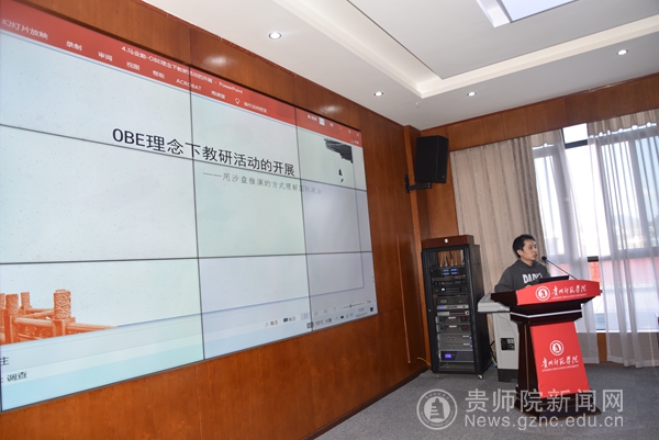 接着,六位公共课程教研室(系)教师代表围绕主题先后作交流发言。马克思主义学院刘顺强老师和马业勤老师分别以《OBE理念视阈下贵州高校劳动教育课程建设研究》和《OBE理念下教研活动的开展——用沙盘推演的方式理解国际政治》为题,交流了在OBE理念下开展劳动教育课程和当代世界经济与政治课程教研活动的做法。