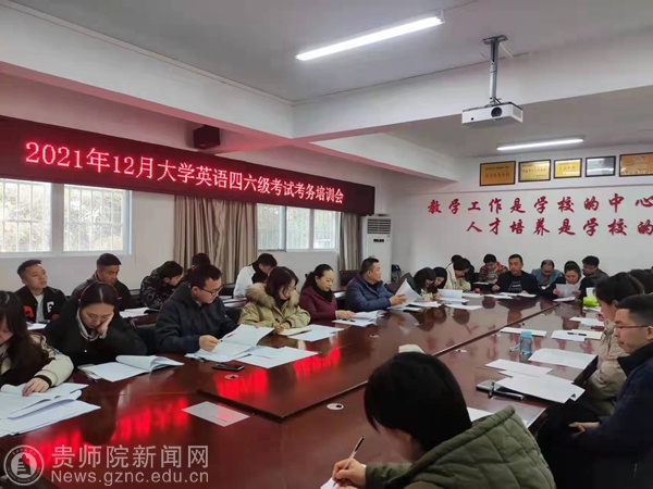 12月17日中午,教务处组织40余名考务工作人员召开考务培训会,教务处处长邓琴在会上指出,全国大学英语四六级考试是国家级考试,是学校非常重要的一项业务工作,其社会影响力和关注度都在不断提高。为此,全体考务工作人员要以高度的责任感和大局意识对待考试工作,充分发挥团队精神,做好考试考务和科学防疫工作。教务处曹发亮老师组织大家学习了考务工作细则,全体考务人员与考务办签订了工作责任书。