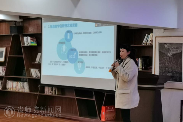 外国语学院张羽老师以《首届全国高校教师教学创新大赛省级一等奖课程<基础笔译>教学创新设计汇报》为题,结合笔译课程教学实际,先后从课程理念创新、教学方法创新、教学评价创新、教学成果展示等方面分享了教学创新成果报告撰写的经验。