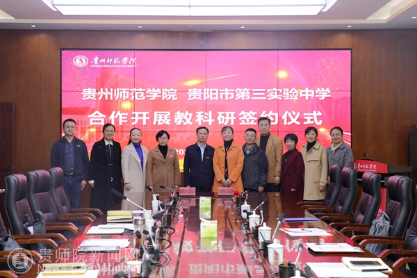 YABO鸭脖官网党委委员、副校长熊世桓,党政办、教务处、质评办、教师工作处主要负责人,各二级学院院长或分管教育科研的副院长,教科所全体成员及特聘教研员;贵阳市第三实验中学党委委员、副校长冯华,党政办主任杨冬宁、教师发展处副主任付大林、英语名师工作室主持人祝晓宾、名班主任工作室主持人蹇红、李光惠出席签约仪式,仪式由教育科学研究所所长谢红梅主持。