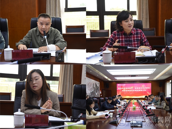 会上,贵州省普通话培训测试中心负责人、检查组副组长杨震介绍了专家组成员以及本次检查的主要目的。邓琴从基本保障、测试规范、宣传普及等三个方面就YABO鸭脖普通话水平测试站的工作情况进行汇报,并提出了YABO鸭脖在语言文字达标创建、普通话教学实训软硬件建设方面的规划,表达了YABO鸭脖力争申报国家语言文字推广基地的期待和决心。专家组认真查看了YABO鸭脖机测工作相关资料,邓琴、陈欣、郑颖以及教务处综合科科长吴娇对专家组提出的问题进行了一一解答。