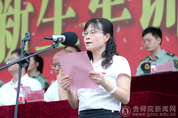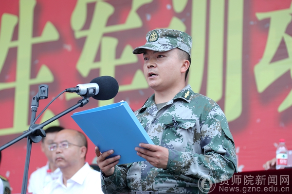 军训教官蒋加富代表全体教官表示,全体教员将发扬部队的优良传统,认真准备、严格要求、严格训练,努力提高同学们的军事理论水平和技能。