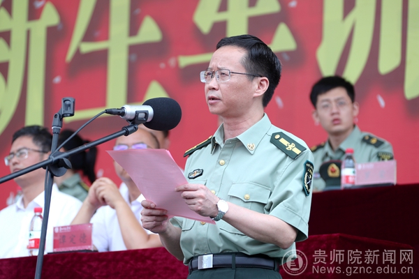 韦维宣布军训团构成及人员名单,郭文宣布营干部任命,熊世桓作动员讲话。熊世桓寄语军训新生,希望同学们坚定理想信念,践行使命担当。树立远大志向,心系民族复兴和国家发展,以高标准要求自己,升华意志,锤炼品格;希望同学们厚植爱国情怀,砥砺强国之志。扎实开展训练,练体格、练作风、练意志,养成能吃苦、守纪律的好习惯,继承和发扬人民解放军“听党指挥、能打胜仗、作风优良”的光荣传统;希望同学们坚持艰苦奋斗,淬炼青春本色。敢于吃苦、严守纪律、虚心学习、牢记安全,在军训会操上交出一份优秀的答卷。