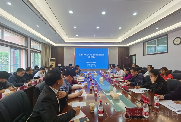 本网讯 4月23-24日,由YABO鸭脖教务处、地理与资源学院共同举办的地理科学专业人才培养与实践教学改革研讨会在地理与资源学院召开,来自惠水县教育局、瓮安中学、贵阳市第28中学等全省基础教育一线的教育行政管理人员、校长、地理教师代表出席本次研讨会,YABO鸭脖教务处处长邓琴、地资学院在家党政班子成员及相关专业教师、学生代表共40余人参加,会议由地理与资源学院副院长罗光杰主持。