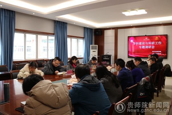 本网讯 3月9日上午,校党委副书记郭文、科研处处长王平瑞、研究生院副院长余乐正等一行到化学与材料学院开展学科建设与科研工作调研活动。会议在化学与材料学院会议室525举行,化学与材料学院党总支书记何毅,副院长王毓及博士教师代表参加了本次会议。