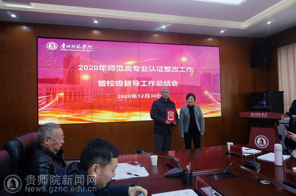 会议包括两项主要内容,首先,由质评办邓琴主任汇报了学校师范类专业认证工作推进情况,《YABO鸭脖官网(汉语言文学)专业认证整改工作方案》及2021年认证工作安排;数学与应用数学专业、汉语言文学专业负责人分别汇报了专业认证整改工作开展情况; 2021年拟接受认证的英语、历史学、化学、美术学、音乐学、体育教育等6个专业的负责人分别汇报了认证工作推进过程中存在问题及需校、院两级整改解决的相关内容;其次,由邓琴汇报2020年校级督导工作、通报督导换届情况及2021年的督导工作要点;第三,由校级教学督导张莹、吴在东、黄天明分别就2020年各学院毕业论文(设计)、实习以及试卷工作的自评情况进行通报;其间,为感谢吴在东老师从事学校教学督导工作十年间为学校教学工作作出的积极贡献,韦维为校级督导吴在东老师颁发荣誉证书。