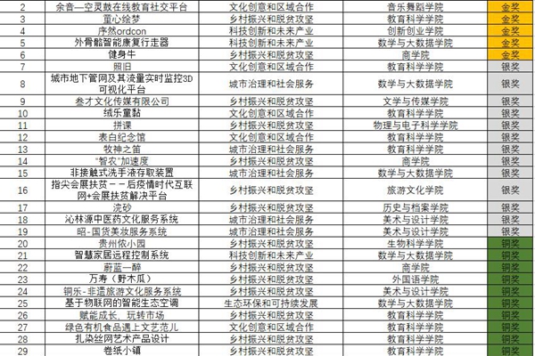 本届比赛采取主题赛制,强调学生通过广泛的社会实践、深刻的社会观察,不断增强对国情社情的了解,激发创新精神,培育创业意识,提升社会化能力,聚焦“创新、协调、绿色、开放、共享”五大发展理念和2020年决战脱贫攻坚、决胜全面小康的目标,包含了科技创新和未来产业、乡村振兴和脱贫攻坚、城市治理和社会服务、生态环保和可持续发展、文化创意和区域合作5个类别。通过初审、线上培训和复审,共有33个项目团队作品进入终审环节。经过角逐和专家评审,物理与电子科学学院的《拾音——全球领先的唇语识别API供应商》等6个作品获得校级金奖,教育科学学院的《照旧》等13个作品获得校级银奖,生物科学学院的《贵州侬小园》等14个作品获得校级铜奖。学校最终将根据省赛名额对相关获奖作品进行改进和优化,推荐参加省赛。