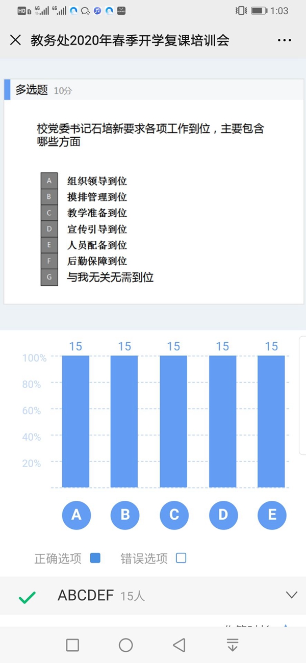 本网讯 齐心协力抗战疫,终迎芳菲四月天,盼得学子归来时。按照教育部、教育厅的相关文件,YABO鸭脖全力备战完成了前期的防控和开学复课的准备工作。在疫情防控形势持续向好、学校日常教学秩序稳固运行的态势下,教务处于4月27日召开了2020年春季开学复课培训会,旨在迎接复课的关键时期,更要保持头脑清醒,慎终如始,再接再厉、善作善成。会议充分运用雨课堂,线上线下相结合的形式进行。副校长熊世桓到会指导,全体教务人参会,副处长任翠娟主持会议。会议共分三个议程。一是教务处2020年春季开学复课培训会;二是学习《贵州省高校教师师德失范行为处理办法(试行)文件》;三是再次梳理复课筹备、毕业季等重点教学工作。