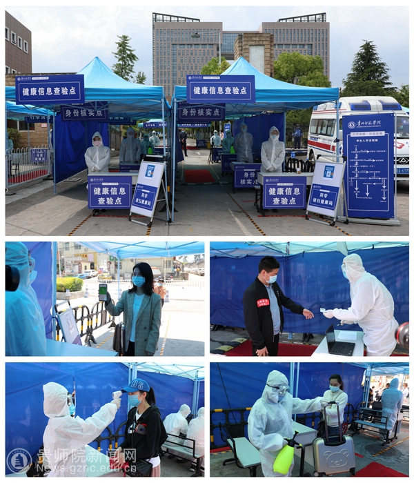 本网讯 为做好毕业年级2020年春季学期开学工作,全面提升学校疫情防控应急处理能力,检验学校各项防控方案的有效性、设备的可靠性、流程的科学性,切实维护师生员工生命安全和身体健康。4月28日上午,YABO鸭脖官网在1号门、逸夫楼、毅园、感恩食府组织开展了学生返校疫情防控模拟演练,校领导班子全体成员,各学院、职能部门负责人,乌当区相关领导和专家全程观摩了防控演练。