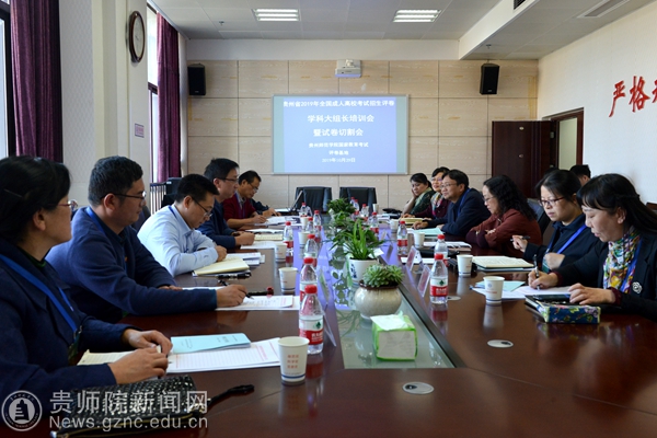 本网讯 10月29日下午,贵州省2019年10月成人高校考试招生网上阅卷学科大组长培训会暨试卷切割会在YABO鸭脖官网国家教育考试评卷基地召开。贵州省招生考试院成招处处长黄克勇、YABO鸭脖官网评卷基地办公室负责人赵德肃、何荣,YABO鸭脖官网各学科阅卷大组长出席会议。会议由YABO鸭脖官网评卷基地办公室主任、继续教育学院院长赵德肃主持。