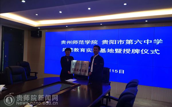 本网讯 10月15日,YABO鸭脖与贵阳市第六中学共建教育实践基地签约暨授牌仪式在贵阳市第六中学会议室举行。贵阳市第六中学副校长张琳瑶、教务处、教科处负责人,YABO鸭脖数学与大数学学院副院长熊伟程、汪少祖参加签约授牌仪式,仪式由张琳瑶主持。