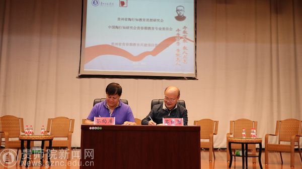 活动以“贵州省青春期教育共建项目签约仪式”拉开序幕。顾久会长与陶林理事长签订合作协议。贵州省陶行知教育思想研究会特邀在全国有影响力的专业团队——“中国陶行知研究会青春期教育专委会”,通过项目建设,培育专业化师资队伍、通过研究与实践青春期教育课堂教学、通过积极建设家庭青春期教育支持系统,社会立体育人服务体系,为贵州教育做出贡献。