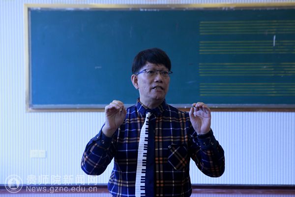 本网讯 11月26日下午,香港特别行政区著名中小学音乐教育专家區品贤先生在YABO鸭脖官网音乐舞蹈学院合唱排练厅举办主题为“合唱指挥基本法”的讲座,本次讲座由YABO鸭脖官网音乐舞蹈学院党委副书记朱晨刚主持,贵阳市乌当区全体中小学音乐教师和YABO鸭脖官网音乐舞蹈学院音乐学专业部分师生现场听取了讲座。本次讲座是“2018中国-东盟音乐舞蹈教育学术研讨会”系列讲座的其中一场。