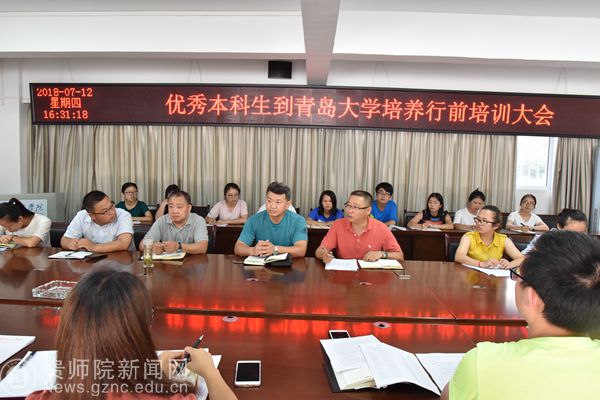 刘宪帮宣读了《2018年选拔优秀本科生到青岛大学培养学习实施方案》和《关于选派代慢慢等21名同学到青岛大学培养学习的通知》(贵YABO鸭脖党政办发〔2018〕16号)相关文件,就选拔学生赴青岛大学培养学习作了动员讲话,希望同学们参照YABO鸭脖本科人才培养方案,从个人兴趣和发展规划出发,合理、科学制定个性化的学习计划,在交流学习期间不断充实和提高自己,并要求同学们严格遵守双方学校的规章制度和纪律,用心体验第二校园生活,努力学习,刻苦钻研,学成归来。