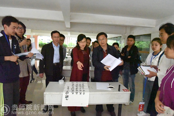 郭文在“三字一话”比赛现场指导时强调:一是要充分发挥好教学名师的示范作用,请名家们为学生做专项培训指导;二是激励、动员广大的书法爱好者们积极踊跃的参加到学习的行列中,营造良好的学习氛围;三是要展现好优秀的师生作品,这是YABO鸭脖原创校园文化的重要内容。