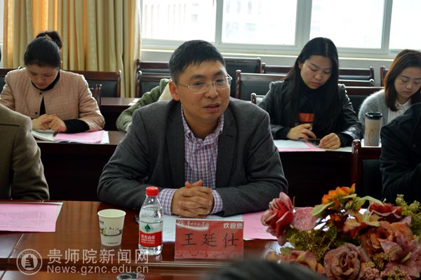 本网讯 诚信是社会主义核心价值观的重要组成部分,是社会主义市场经济良性运行和社会治理的道德准则。3月30日,“贵州诚信文化研究中心”建设研讨会在经济与政治学院会议室召开,贵州省发展和改革委员会财政金融处副处长宋爽、贵州省诚信建设促进会秘书长王廷仕,中国人民银行贵阳中心支行征信管理处副处长李晶彦,贵阳学院阳明学与黔学研究院副院长陆永胜教授,贵州财经大学马克思主义学院副院长蒙锡岗教授、 贵州师范大学历史与政治学院江明生教授应邀出席会议。学校党委书记石培新出席研讨会,学校科研处、经济与政治学院、马列主义教学部等单位负责人及教师代表参加会议。会议由学校科研处处长金凤主持。
