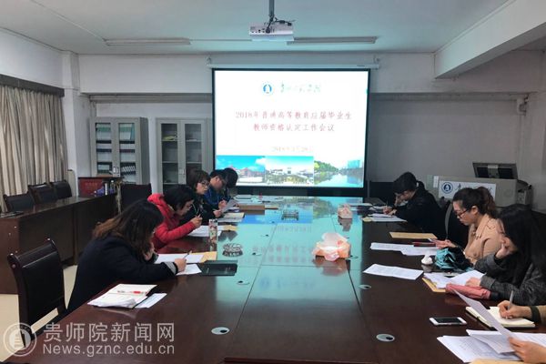 会上,刘宪帮就贵阳市教育局《关于做好2018年教师资格认定工作的通知》(筑教办发〔2018〕37号)等文件进行了解读,要求参与认定工作的人员切实按照上级教育部门以及学校的要求和时间节点开展工作,有耐心地组织和指导学生进行申报,并对申报资格进行严格把关。他提到,自本届毕业生起,申办教师资格证必须先获得国家中小学教师资格考试合格证,所以本次认定审核工作量大、环节多,务必要做到认真、细致、规范和准确,确保“一个不多、一个不少、一个不错”。与会人员认真学习了《教师资格审核流程及注意事项》,教务处负责教师资格认定工作的老师现场进行了网报操作演示并对老师们提出的问题一一作答。历年参加过此项工作的老师还在会上积极与大家交流分享经验。会后,各学院负责此项工作的老师与教务处签署了承诺书,承诺按相关管理规定组织和开展本次教师资格认定工作。