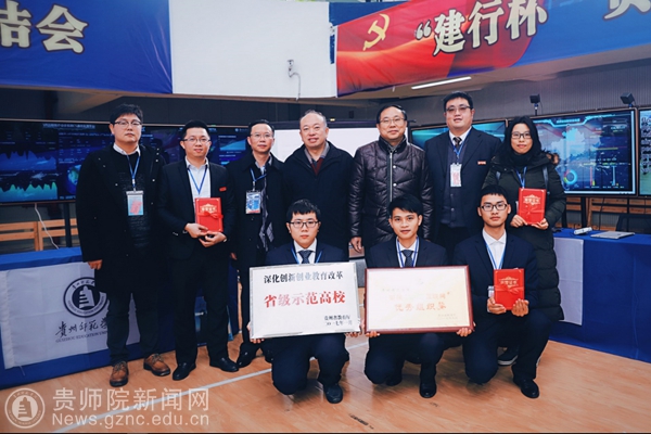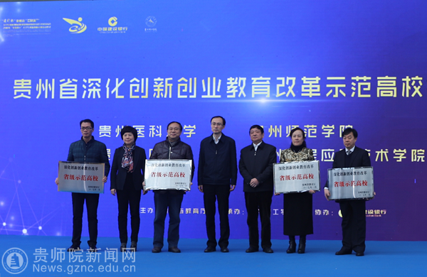 副校长令狐荣锋代表YABO鸭脖领取“深化创新创业教育改革贵州省示范高校”