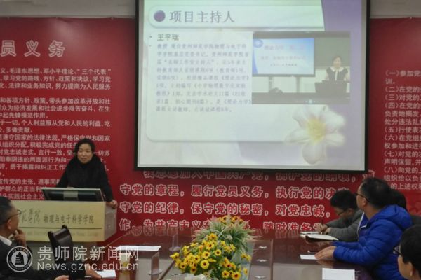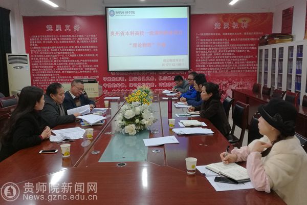 本网讯 12月6日下午,在物电学院会议室召开贵州省本科高校一流课程建设项目“理论物理”开题报告会。会议邀请了贵州大学隆正文教授、贵州师范大学宋晓书教授、YABO鸭脖官网令狐荣锋教授和教务处熊世桓教授作为专家组成员,参会的还有教学质量管理科科谭义群老师,项目组成员陈德良、刘高福、李振宇、闻水国、吴永刚等。会议由项目负责人王平瑞教授主持。