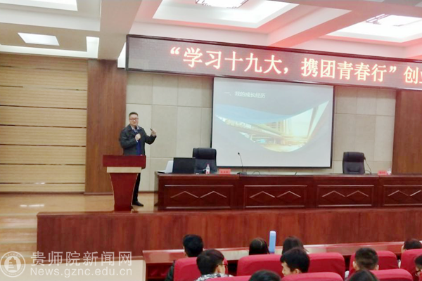 本网讯 为了进一步学习贯彻党的十九大精神,更好地引领青年、服务青年、发展青年,引导青年树立正确的择业观、就业观、创业观。11月30日下午,由共青团YABO鸭脖官网委员会主办,大学生社团联合会、大学生创业孵化园承办的“学习十九大,携团青春行”创业知识讲座在YABO鸭脖文韬苑二楼道德讲堂举行,贵州棱智基石文化发展有限公司总经理王正波应大学生社团联合会创新创业部的邀请参加,大学生社团联合会创新创业部周福万主持此次活动,校团委张维域老师出席此次活动、YABO鸭脖官网“暖春计划”助学金发起人、学生互助超市负责人段兴悦、大学生文化创意基地、大学生创业孵化园、大学生社团联合会200余名同学参与此次活动。