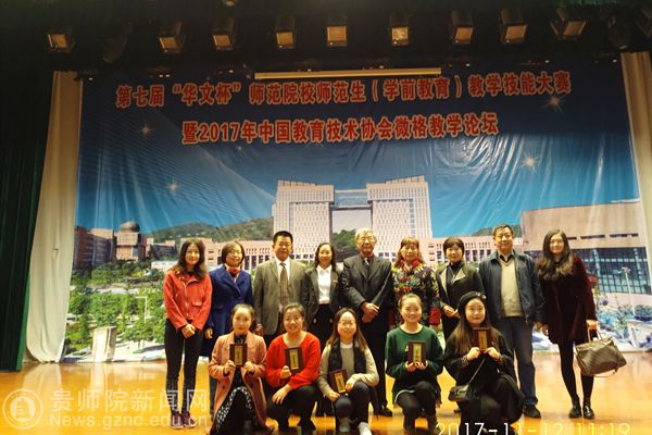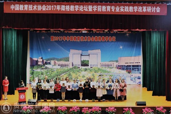 会议伊始,两名获奖的优秀选手分别进行了教学技能的现场展示,内容生动、形式新颖、教学方法多样,博得现场观众阵阵掌声;接着,贵州师范大学教育科学学院学前教育系主任李旭博士对比赛情况进行了点评;随后,YABO鸭脖官网教育科学学院大拇指儿童剧团带来了自编、自导、自演的儿童剧《月亮的味道》,充分展现了YABO鸭脖学前教育学子的风采;紧接着,中国教育技术协会微格教学专委会秘书长杨华教授对本次比赛进行总结,他充分肯定了此次比赛的成绩,对参赛学员的完美表现、领队教师的辛勤指导、大赛承办方工作人员的热情付出和周到服务表示由衷的感谢,并对学前教育的改革和发展提出了新的希望;最后,中国教育技术协会微格教学专委会副理事长、本次大赛评委会副主任杜复平教授宣读了在教学设计、教学技能中获奖的人员名单,并与参会嘉宾为获奖选手颁发了证书。
