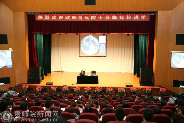 本网讯 为了营造浓厚的科学研究氛围,拓展全校师生的学术视野,提升YABO鸭脖人才培养的质量。10月29日下午,我国著名天体化学与地球化学学家、中国科学院院士、发展中国家科学院院士、国际宇航科学院院士、中国探月总工程首席科学家,被誉为“嫦娥之父”的欧阳自远院士应化学与生命科学学院邀请,在逸夫楼演播厅进行了 “中国的探月梦”专题报告。校长郁钟铭、副校长令狐荣锋出席,科研处处长金凤、化学与生命科学学院全体院领导、物理与电子科学学院、地理与旅游学院领导及500余名师生聆听了此次报告会,报告会由郁钟铭校长主持。