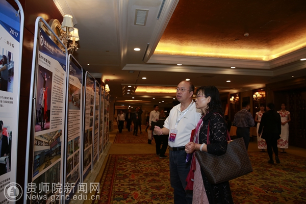 校长郁钟铭与副校长郭文交流与会院校专业设置情况