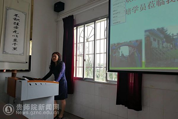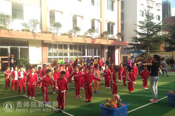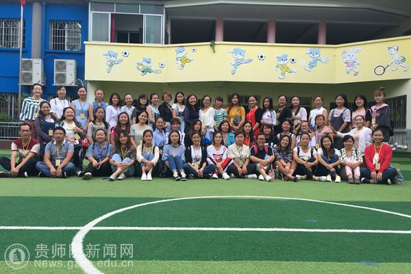 本网讯 为了学员能深入了解乡村幼儿园的特色发展,9月25日,“国培计划(2017)”—少数民族地区乡村幼儿园教师培训团队成员到修文县扎佐镇幼儿园开展了为期一天的观摩学习活动。本次观摩活动由本校教育科学学院教师李姿雨带队,修文县扎佐幼儿园园长秦晓菊主持。